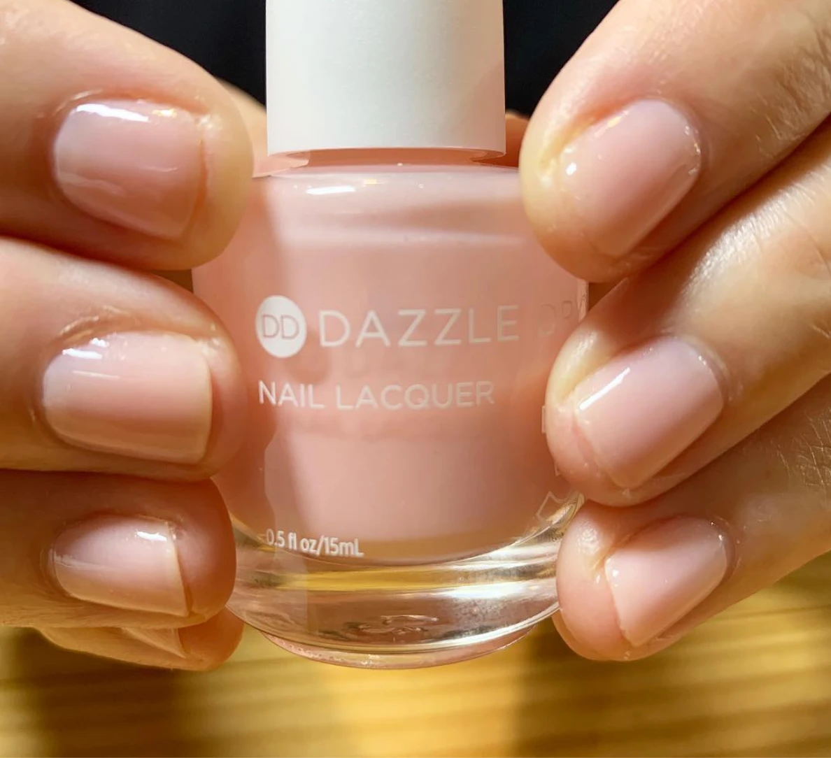 A soft, pale creamy pink with a subtle shimmer.