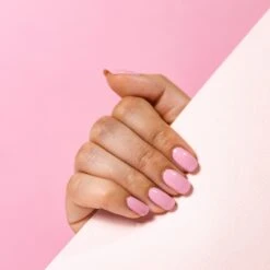A muted bubble gum pink nail lacquer with a creamy finish.