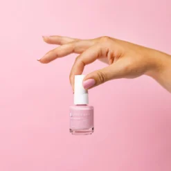 A muted bubble gum pink nail lacquer with a creamy finish.